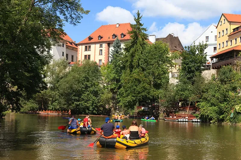 อีกกิจกรรมที่ช่วยให้รู้จัก cesky krumlovในมุมใหม่ การล่องแพไม้หรือแพยางบนแม่น้ำ Vltava ซึ่งเป็นสายน้ำสายหลักของเมือง เปิดมุมมองบ้านเรือนสีพาสเทล ปราสาท และสะพานหินโค้งจากระดับน้ำอย่างใกล้ชิด เส้นทางล่องผ่านคุ้งน้ำสำคัญ ใช้เวลาประมาณ 30–60 นาที จังหวะการล่องค่อนข้างนิ่ง เหมาะสำหรับการชมวิวและถ่ายภาพ กิจกรรมนี้นิยมช่วงปลายฤดูใบไม้ผลิถึงต้นฤดูใบไม้ร่วง (ราวเมษายน–ตุลาคม) มีผู้ให้บริการหลายจุดใกล้ย่านเมืองเก่า สามารถเลือกแพไม้แบบดั้งเดิมหรือแพยางตามความถนัด