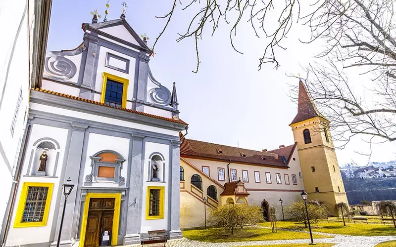 อารามเก่าแก่ริมแม่น้ำ Vltava ที่มีประวัติย้อนไปถึงศตวรรษที่ 14 เคยเป็นที่พำนักของคณะนักบวชฟรานซิสกัน และมีบทบาทสำคัญต่อชุมชนของ cesky krumlovมายาวนาน พื้นที่อารามรายล้อมด้วยสวนสไตล์ดั้งเดิม จัดเป็นเส้นทางเดิน ลัดเลาะผ่านต้นไม้และแปลงดอกไม้ เหมาะสำหรับการเดินเล่นหรือหยุดพักระหว่างการเที่ยวเมืองเก่า เสียงน้ำจากแม่น้ำที่ไหลอยู่ใกล้ ๆ ช่วยสร้างบรรยากาศผ่อนคลาย แตกต่างจากย่านท่องเที่ยวหลักที่อยู่ไม่ไกล