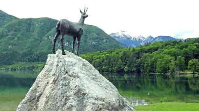 ตำนานความรักแห่งขุนเขาทริเกลา (TRIGLAV) ชายฝั่งทะเลสาบบอฮินจ์มีรูปปั้นของ เลียงผายืนเด่นเป็นสง่า เรียกเป็นภาษา สโลวีเนียว่า “ซลาโทรอค” (Zlatorog) เจ้าของตำนานเลียงผาขาวเขาสีทอง แห่งยอดเขาทริเกลา มีเรื่องเล่าของ พรานหนุ่มซึ่งถูกครอบครัวของสาวคน รักกีดกันและยื่นข้อเสนอพิสูจน์รักแบบ Mission Impossible ให้เขาไปหาขุม ทรัพย์ของซลาโทรอคที่ซ่อนไว้ใต้ภูเขา หรืออย่างน้อยก็ต้องนำช่อกุหลาบแห่ง ทริเกลากลับมาให้ได้ในกลางฤดูหนาว พรานหนุ่มพยายามสุดชีวิตจนได้พบ และยิงซลาโทรอคจนเลือดหยาดหยด เกิดดอกกุหลาบวิเศษแห่งทริเกลาผุด ขึ้น ล่อให้พรานหนุ่มปีนผาตามสูงขึ้น ไป ๆ จนแสงฉายส่องเขาสีทองเปล่ง ประกายจ้าทำให้พรานหนุ่มตาพร่าพลัด ตกลงไปในโตรกธารมีสายน้ำเบื้องล่างรองรับโอบอุ้มร่างของเขา ส่วนซลาโทรอค ผู้มีเมตตาและเป็นที่ศรัทธาของผู้คนถูก ลบหลู่ทำร้ายทำให้โกรธเคืองจนไม่ สามารถจะอยู่ต่อไปได้ จึงใช้เขาทิ่มแทง ไปทั่วหุบเขาจนเกิดทะเลสาบน้อยใหญ่ ดั่งที่เห็นในปัจจุบัน แล้วก็จากไปไม่ หวนกลับมาอีกเลย หญิงสาวเฝ้ารอคน รักกลับมาด้วยความหวังอันริบหรี่ จน วันหนึ่งในฤดูใบไม้ผลิหิมะละลาย แม่น้ำโซชา (Soca) ได้พาร่างของแฟน หนุ่มกลับมาในมือของเขายังคงกำ กุหลาบแห่งทริเกลาตามสัญญา คนที่ อาศัยอยู่กลางจูเลียนแอลป์เชื่อว่า ซลาโทรอคยังคงคอยปกปักษ์รักษา เทือกเขารอบๆทะเลสาบและยังเป็น สัญลักษณ์ของธรรมชาติและความอุดม สมบูรณ์อีกด้วย