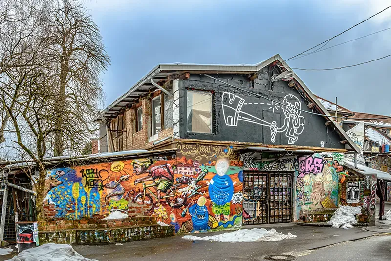 อีกหนึ่งมุมของลูบลิยานาที่ไม่เหมือนใคร AKC Metelkova Mesto คือการระเบิดอารมณ์ทางวัฒนธรรมที่ยังคุกรุ่นอยู่ ท่ามกลางกำแพงเก่าของอดีตฐานทัพทหารยูโกสลาเวีย ที่ทุกวันนี้กลายเป็นผืนผ้าใบของเหล่าศิลปินหัวก้าวหน้าที่หาญกล้าออกมาท้าทายจินตนาการและปฏิวัติอย่างสันติในปี ค.ศ. 1993 เปลี่ยนโฉมจากกำแพงที่เคยเงียบเหงากลายเป็นฉากของผลงานขนาดยักษ์ด้วยกราฟฟิตี้สะท้อนสังคม ควบคู่ไปกับเสียงดนตรีที่ดังก้องออกมาจากคลับใต้ดินที่เคยถูกใช้เป็นห้องบัญชาการ บรรยากาศคลุกกรุ่นไปด้วยจิตวิญญาณแห่งอิสรภาพตลอด 24 ชม.