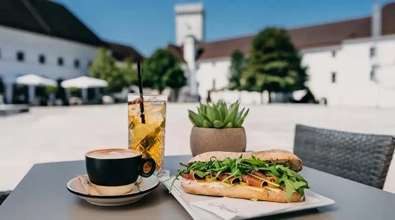 คาเฟ่บรรยากาศอบอุ่นภายในปราสาทลูบลิยานา เสิร์ฟกาแฟหอมกรุ่นและเบเกอรีโฮมเมดสูตรพิเศษ เหมาะสำหรับพักเบรกระหว่างชมปราสาท หรือจิบกาแฟชมวิวทางเข้าหอไวน์อย่างเงียบสงบ เมนูเด่นที่ต้องลองคือ "Ljubljana Castle Blend" กาแฟคั่วพิเศษที่พัฒนาสูตรเฉพาะร่วมกับนักคั่วท้องถิ่น เสิร์ฟคู่กับ "Bled Cream Cake" เวอร์ชั่นโฮมเมดที่ปรับสูตรให้เข้ากับรสชาติกาแฟ เปรียบเสมือนจุดเชื่อมระหว่างกลิ่นอายประวัติศาสตร์และความละมุนของศิลปะการใช้ชีวิตแบบยุโรปกลางที่แท้จริง