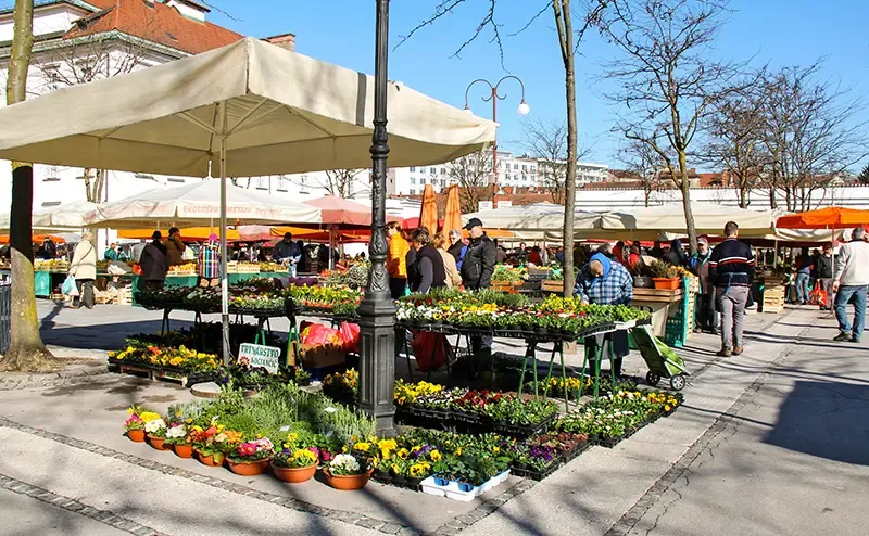 แหล่งรวมวัฒนธรรมอาหารสโลวีเนีย ตั้งอยู่ริมแม่น้ำ Ljubljanica ห่างจาก Tivoli Park เพียงระยะเดินสบาย ๆ ออกแบบโดย Jože Plečnik ในช่วงทศวรรษที่ 19 แบ่งเป็นสองส่วนอย่างชาญฉลาด ด้วยอาคารเสาโค้งทรงคลาสสิกที่ปกป้องผู้ค้าจากแสงแดด และลานกลางแจ้งที่อบอวลด้วยกลิ่นหอมของผลไม้ตามฤดูกาล ทุกเช้าชาวเมืองจะมาจับจ่ายผักสดที่เพิ่งเก็บจากไร่ ชีสแกะจากฟาร์มบนเทือกเขาแอลป์ และขนมปังอบใหม่จากเตาไม้ ส่วนโซนอาหารสำเร็จรูปนั้นเป็นสวรรค์ของนักชิม ซึ่งเต็มไปด้วยสตรีทฟู้ดอย่าง "Kranjska Klobasa" ไส้กรอกสไตล์ท้องถิ่น หรือ "Potica" ขนมหวานโบราณที่หาทานยาก นอกจากนี้ยังมีโซนคาเฟ่ริมน้ำ ซึ่งเป็นจุดชมวิวชั้นดีสำหรับดูเรือคายัคล่องผ่านไปมาอีกด้วย