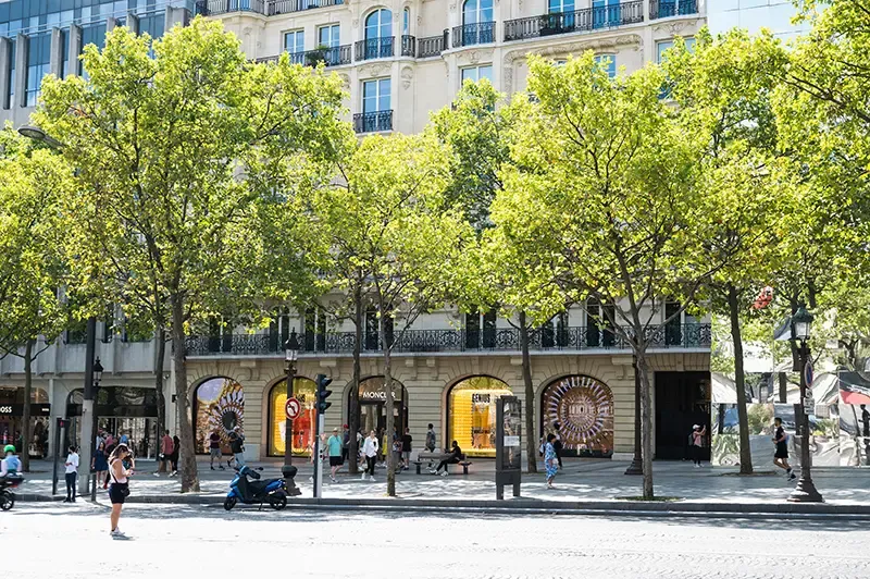 หนึ่งในย่านการค้าที่มีชื่อเสียงที่สุดในโลก และเป็นสัญลักษณ์ของมหานครปารีสอย่างแท้จริง เดิมเป็นเพียงทุ่งโล่งและสวนหย่อมของพระราชวังตุยเลอรี ก่อนจะได้รับการพัฒนาให้เป็นถนนสายสำคัญในศตวรรษที่ 17 โดยพระราชินีมารี เดอ เมดิชิ และได้รับการปรับปรุงต่อเนื่องจนกลายเป็นแลนด์มาร์กที่มีชีวิตชีวา เต็มไปด้วยโรงละครระดับโลก ร้านกาแฟบรรยากาศคลาสสิก ร้านอาหารชั้นเลิศ และบูติกแบรนด์หรูที่เรียงรายตลอดสองฝั่งถนน นอกจากจะเป็นแหล่งช้อปปิ้งชั้นนำแล้ว Champs-Élysées ยังเป็นศูนย์กลางกิจกรรมสำคัญของชาติ เช่น ขบวนพาเหรดวันชาติฝรั่งเศสและเส้นชัยของการแข่งขันจักรยาน Tour de France ที่ดึงดูดผู้คนจากทั่วโลกให้มาสัมผัสเสน่ห์แห่งความหรูหราที่สอดแทรกเข้ากับประวัติศาสตร์และวัฒนธรรมฝรั่งเศสไว้อย่างลงตัว