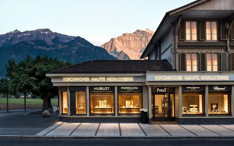 ร้านนาฬิกาหรูขนาดใหญ่ใจกลางเมืองอินเทอร์ลาเคน ที่รวบรวมนาฬิกาจากแบรนด์สวิสชั้นนำกว่า 70 แบรนด์ เช่น Rolex, IWC, TAG Heuer, Longines และ Tissot รวมถึงเครื่องประดับ เครื่องหนังคุณภาพสูง และของที่ระลึกท้องถิ่น ถือเป็นสวรรค์สำหรับนักสะสมนาฬิกาและผู้ที่มองหาของขวัญสุดพิเศษท่ามกลางวิวทะเลสาบและเทือกเขาสวิตแอลป์ที่สวยงาม ร้านตั้งอยู่บนถนน Höheweg 73 ใจกลางเมืองอินเทอร์ลาเคน บริการลูกค้าด้วยทีมงานมืออาชีพที่พูดได้หลายภาษา พร้อมให้คำแนะนำและบริการหลังการขายอย่างครบครัน มีโปรโมชั่นพิเศษต่าง ๆ ตลอดทั้งปี คุ้มค่าในการช้อปปิ้งมากที่สุด