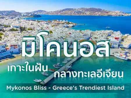 กรีซไม่ได้มีเพียงซานโตรินีในท้องทะเลอีเจียนอันสวยงาม “เกาะมิโคนอส” (Mykonos) คือหนึ่งในเมืองตากอากาศที่สวยที่สุดในกรีซ เป็นส่วนหนึ่งของหมู่เกาะ Cyclades สะกดสายตาด้วยภูมิทัศน์ของกลุ่มอาคารสีขาวที่แต่งแต้มด้วยสีสันต่าง ๆ กับบรรยากาศริมทะเลสีเทอร์ควอยซ์และหาดทรายสีทองที่ถูกอาบไปด้วยแสงแดดอันอบอุ่น เป็นเหตุผลที่หลายคนให้คำนิยามเกาะแห่งนี้ว่า “เพชรเม็ดงามแห่งทะเลอีเจียน” จากเอเธนส์ สามารถบินตรงไปยัง Mykonos Airport ใช้เวลาเพียง 45 นาที จากนั้นใช้บริการ Shutter Bus จากสนามบินเข้าสู่ตัวเมือง (Chora) เพียง 10 นาที หรือจะใช้บริการเรือเฟอร์รี่จากเกาะใกล้เคียงไปยังเกาะมิโคนอสก็ได้เช่นกัน