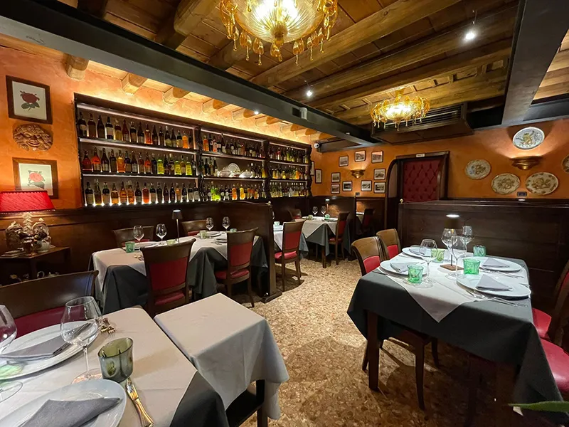 โอสเทเรียเก่าแก่ที่อบอวลไปด้วยกลิ่นอายแบบเวโรนาโบราณ บรรยากาศภายในร้านตกแต่งด้วยของเก่าชิ้นเล็กชิ้นน้อยที่บอกเล่าประวัติศาสตร์และวิถีชีวิตของคนท้องถิ่น เสิร์ฟเมนูดั้งเดิมที่หาทานยากในยุคปัจจุบัน เช่น Bigoli in Salsa เส้นพาสต้าสูตรโบราณที่นวดมือด้วยความพิถีพิถัน ราดด้วยซอสปลาซาร์ดีนแบบดั้งเดิมที่มีกลิ่นรสเข้มข้นและละมุนลิ้น ทุกคำคือการเดินทางย้อนเวลากลับสู่อดีตในบรรยากาศร้านที่อบอุ่นเหมือนนั่งทานข้าวในบ้านคุณยาย พร้อมไวน์ท้องถิ่นคัดสรรโดยเจ้าของร้านที่หลงใหลในรสชาติแท้จริงของแคว้นเวเนโต