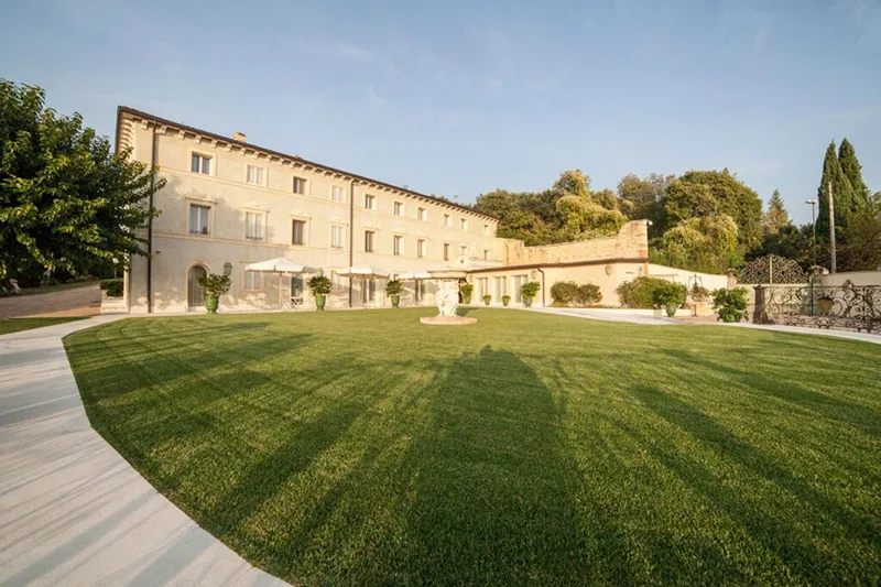 บูทีคโฮเทลที่ตั้งอยู่บนเนินเขาอันเงียบสงบริมฝั่งตะวันออกของแม่น้ำ Adige รายล้อมด้วยสวนมะกอกเขียวขจีและทิวทัศน์เมืองเวโรนาในมุมสูงที่สวยงามราวภาพวาด ให้ความรู้สึกเป็นส่วนตัวและอบอุ่นเหมือนบ้านพักในชนบทของอิตาลีแท้ ๆ ห้องพักตกแต่งด้วยสไตล์คลาสสิกซึ่งเน้นรายละเอียดของงานฝีมือ ประดับด้วยเตาผิงหินที่เพิ่มบรรยากาศอบอุ่นในยามค่ำคืน จุดเด่นอยู่ที่สระว่ายน้ำกลางแจ้งที่ทอดสายตาออกไปเห็นหลังคาสีแดงเรียงรายของเมืองเวโรนาอย่างกว้างไกล