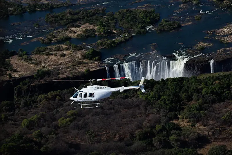 กิจกรรมยอดนิยมและดีที่สุดในการชมน้ำตกวิกตอเรียคือการขึ้นเฮลิคอปเตอร์ หรือที่รู้จักกันในชื่อ “Flight of Angels” เปิดมุมมองจากฟากฟ้าให้เห็นสายน้ำมหาศาลของแม่น้ำแซมเบซีที่ไหลตกจากหน้าผาสูงกว่า 100 เมตรอย่างเต็มตา เผยให้เห็นรูปร่างของน้ำตกทั้งแนวยาว ป่าดิบเขียวชอุ่ม และละอองหมอกที่ลอยขึ้นสู่ท้องฟ้าในภาพเดียว จุดขึ้นบินสามารถเลือกได้ทั้งจากเมือง Victoria Falls ในซิมบับเว หรือเมือง Livingstone ในแซมเบีย ซึ่งอยู่ห่างจากน้ำตกเพียงราว 15 กม.