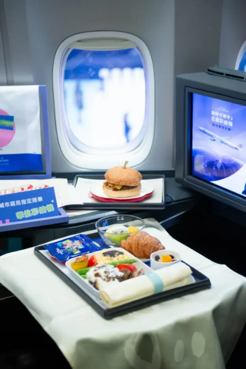 3.เมนูอาหารและเครื่องดื่ม ถูกออกแบบให้สอดคล้องกับธีมของเที่ยวบินเป็นรายละเอียดที่หลายคนมองข้าม แต่กลับมีผลต่อความรู้สึกโดยรวมอย่างมาก แก้วน้ำที่มีลายตัวละคร บรรจุภัณฑ์ของว่างที่มีกราฟิกพิเศษ หรือเมนูที่ตั้งชื่อตามคาแรคเตอร์เหมือนเป็นสิ่งเล็กน้อย แต่ทุกครั้งที่ผู้โดยสารหยิบสิ่งเหล่านี้ขึ้นมา มันก็ย้ำเตือนว่าพวกเขากำลังอยู่ในบางอย่างที่พิเศษกว่าเที่ยวบินธรรมดา