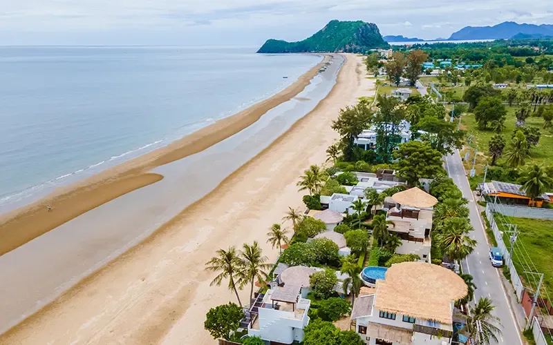 ถนนเลียบชายหาดปากน้ำปราณเป็นเส้นทางสาดน้ำที่ยังคงความ “โลคอลแท้ ๆ” ไว้อย่างกลมกล่อม และเป็นจุดหมายที่นักท่องเที่ยวสายสงกรานต์ตัวจริงไม่ควรพลาด ชายหาดยาวประมาณ 3 กม.โอบล้อมด้วยภูเขาเตี้ย ๆ และทุ่งมะพร้าวให้บรรยากาศร่มรื่น พร้อมอุ่นเครื่องความคึกคักด้วยเทศกาล Songkran Pran Beach Festival 2026 & Bikini Run ที่จะเริ่มตั้งแต่วันที่ 11 เม.ย. ชวนทุกคนออกมาวิ่งริมหาด พร้อมสาดน้ำเล่นกับแบบชิล ๆ ในบรรยากาศเป็นกันเองราวกับรู้จักกันมานาน ความสนุกที่นี่ไม่รีบเร่ง แต่ค่อย ๆ ไหลไปตามจังหวะเรียบง่ายของวัน มีร้านอาหารซีฟู้ดสด ๆ จากชาวประมงท้องถิ่นเรียงรายให้แวะพักเติมพลังระหว่างเล่นน้ำ ขณะที่ชายหาดเงียบสงบ ลมทะเลเอื่อย ๆ และน้ำทะเลใสสะอาดทำหน้าที่เหมือนพื้นที่พักหายใจ เล่นน้ำจนเหนื่อยก็แค่ถอยออกมารับลม หรือเดินไปตามสะพานไม้ชมวิวปากน้ำก็ดีงาม