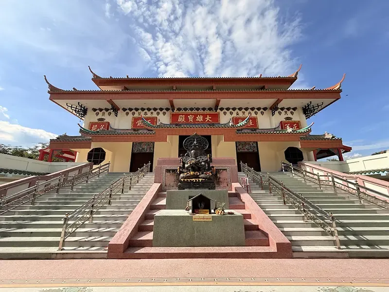 ภายในวัดงดงามด้วยสถาปัตยกรรมจีนที่ประณีต ตั้งแต่ซุ้มประตู หอแปดเหลี่ยม ไปจนถึงวิหารต่าง ๆ เช่น วิหารพระอวโลกิเตศวรโพธิสัตว์ปางพันมือพันตา วิหารพระกษิติครรภ์โพธิสัตว์ และวิหารบรรพบุรุษ เมื่อเข้าสู่วัดจะพบวิหารท้าวจตุโลกบาล ก่อนถึงอุโบสถจีนหลังคาซ้อนสามชั้น ยอดทรงเจดีย์ ภายในประดิษฐานพระพุทธเจ้าสามพระองค์ พร้อมพระสาวกและพระโพธิสัตว์ ซึ่งตั้งตระหง่านอยู่ท่ามกลางบรรยากาศอันสงบ ร่มรื่น เหมาะแก่การขอพร ปฏิบัติธรรม หรือเดินชมความงามของศิลปะและธรรมชาติ ซึ่งช่วยเติมเต็มพลังใจและปิดเส้นทางมังกรได้อย่างสมบูรณ์