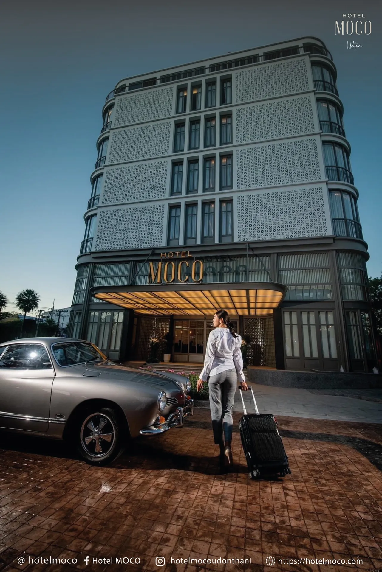 Hotel MOCO Udonthani ได้รับการรังสรรค์ให้เป็นโรงแรมสไตล์โมเดิร์นแห่งแรกและแห่งเดียวใจกลางเมืองอุดรธานี โดดเด่นด้วยอาคารทรงโค้งมนที่ได้แรงบันดาลใจจากสถาปัตยกรรมไทยในสมัยรัชกาลที่ 5-6 ถ่ายทอดออกมาในรูปแบบที่ร่วมสมัยและอบอุ่น เมื่อมองจากภายนอกก็ดึงดูดสายตา แต่เมื่อก้าวเข้าสู่ด้านใน คุณจะสัมผัสถึงความหรูหราและการออกแบบที่พิถีพิถันทุกรายละเอียด