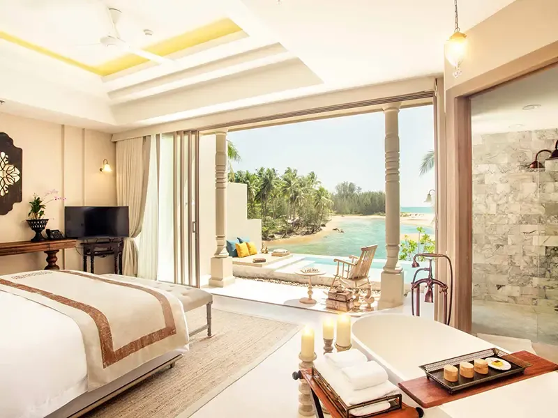 แรงบันดาลใจจากการเดินทางและท้องทะเลที่ถูกถ่ายทอดผ่านทุกรายละเอียดของการดีไซน์ภายใต้รีสอร์ตแห่งนี้ ห้องพักทุกห้องตกแต่งสไตล์โมเดิร์น-โคโลเนียล พร้อมระเบียงที่เปิดรับลมทะเลและทิวทัศน์กว้างไกลของอันดามัน มีไฮไลท์คือ สระว่ายน้ำลากูนขนาดใหญ่ ที่ทอดยาวเชื่อมต่อบาร์และพื้นที่พักผ่อนกลางแจ้ง เติมเต็มวันสุดพิเศษด้วยกิจกรรม Wellness Signature ไม่ว่าจะเป็น โยคะริมสระยามเช้า คลาสพิลาทิสกลางสวน และทรีตเมนต์สปานวดน้ำมันอุ่นพร้อมสมุนไพรท้องถิ่นที่ช่วยฟื้นฟูร่างกายและจิตใจอย่างสมดุล ไปจนถึงห้องอาหาร Rim Talay Restaurant & Bar ที่ให้บริการมื้ออาหารสุขภาพและเมนูนานาชาติหลากหลายให้ได้อิ่มอร่อย พร้อมดื่มด่ำกับสายลมทะเลและเสียงคลื่นยามเย็นที่แสนโรแมนติก