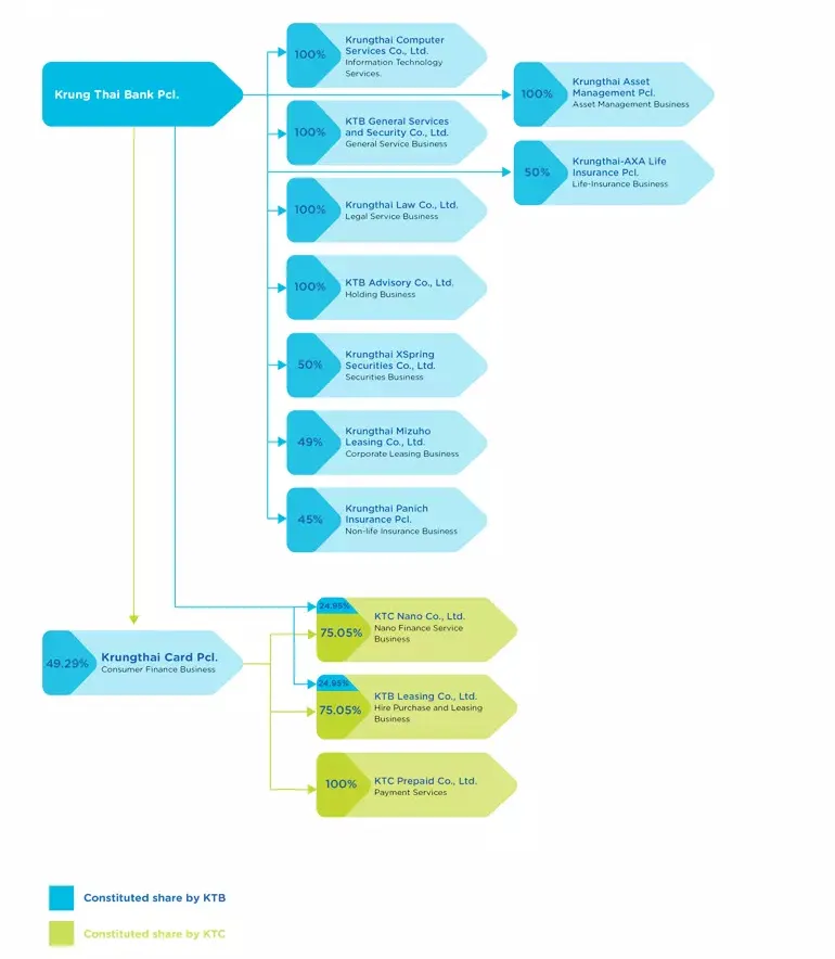 On August 30, 2024, the major shareholder of Krungthai Card Public Company Limited is Krung Thai Bank Public Company Limited (“the Bank”) with 49.29% holding. Thus, the shareholder structure of the company can be shown as follows;
