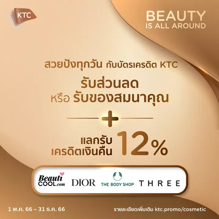“As a range of factors continues to push all business mechanisms to return to normal conditions, people started to live freely and enjoy life in their own way. KTC decided to maximize this marketing opportunity by partnering with 4 leading partners in the cosmetics category: Dior, Beauticool, The Body Shop, and THREE, to offer special privileges to cardmembers to pamper their skin and express their personalities through colors. The special privileges include:Diorget an Addict Lip Maximizer 001 miniature lipstick (2 ml.) upon shopping 3,500 baht or more per transaction online atwww.shop.dior.co.thand apply the “KTCDIOR” code from 1 May 2023 to 31 July 2023;Beauticoolget up to 250 baht discount upon shopping online atwww.beauticool.comfrom 1 May 2023 to 31 December 2023.Special offer for new Beauticool membersget 150 baht discount upon spending 1,500 baht or more per transaction and apply the “KTCBTC150” code or get 100 baht discount upon spending 1,100 baht or more per transaction and apply the “KTCBTC100” code;The Body Shopget a 300 baht discount upon shopping 2,000 baht or more per transaction online atwww.thebodyshop.co.thand apply the “TBSXKTC” code from 1 May 2023 to 31 July 2023, andTHREEget a Three Balancing Cleansing Oil (10 ml. worth 250 baht) upon shopping online atwww.threecosmetics-th.comwith no minimum spend and apply the “KTCTHREE” code from 1 May 2023 to 31 July 2023.”