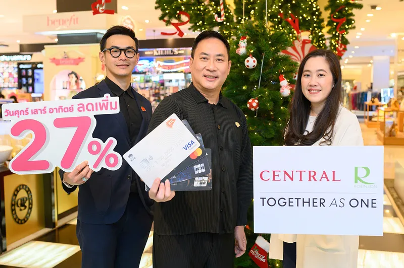 Mr. NattasitSoontranu, Vice President- Credit Card Business, “KTC”orKrungthai Card Public Company Limited,joins hands withMs.RvisraChirathivat,Customer Director, CentralDepartment Store Company LimitedandRobinson Public Company Limited,underCentral Retail Group,to stimulate shoppers to shop during the end of year with gifts for KTC credit cardmembers. Cardmembersearn additional 27% discount every Friday, Saturday, and Sundayoradditional 13% discount every Monday to Thursdayat every“Central” and “Robinson”department store branches, simply by making transaction with a KTC credit card and the usage ofKTC FOREVERpoints equivalent to the amount of the transactionfrom December 18 to 27, 2020.