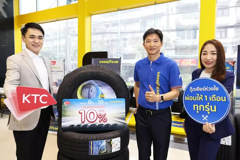 “KTC”orKrungthai Card Public Company Limited,byMr. Suwat Tepprecharsakul, Vice President - Credit CardMarketing,jointly withGoodyear (Thailand) Public Company Limited, byMiss Ladda Simuang, Marketing Lead,offers KTC credit cardmembers options topay in 0% installmentsfor10 monthsandget 10% cash backfor all Goodyear car tire changes atGoodyear Autocareand participating dealers. Register via SMS:type GY(space) 16 digit card number, the “#” symbol, and the payment amount per transaction and send to 061 384 5000from February 1 to March 31, 2022.