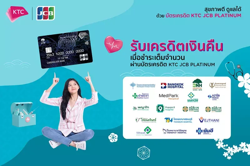 “KTC”orKrungthai Card Public Company Limited,offers cardmembers cash back on full-priced transactions made with allKTC JCB PLATINUMcredit cards at participating leading hospitals, as follows: 1)Get 50 baht cash backupon a minimum spend of 5,000 - 9,999 baht per transaction; 2)Get 120 baht cash backupon a minimum spend of 10,000 - 49,999 baht per transaction; 3)Get 700 baht cash backupon a minimum spend of 50,000 - 79,999 baht per transaction; 4)Get 1,300 baht cash backupon a minimum spend of 80,000 - 149,999 baht per transaction, and 5)Get 3,000 baht cash backupon a minimum spend of 150,000 baht or more per transaction. Register via SMS: typeHOJ(space) 16 digit card number and send to061 384 5000(3 baht/SMS) or online athttps://bit.ly/KTCJCBCashbackfromJuly 1 to December 31, 2021.