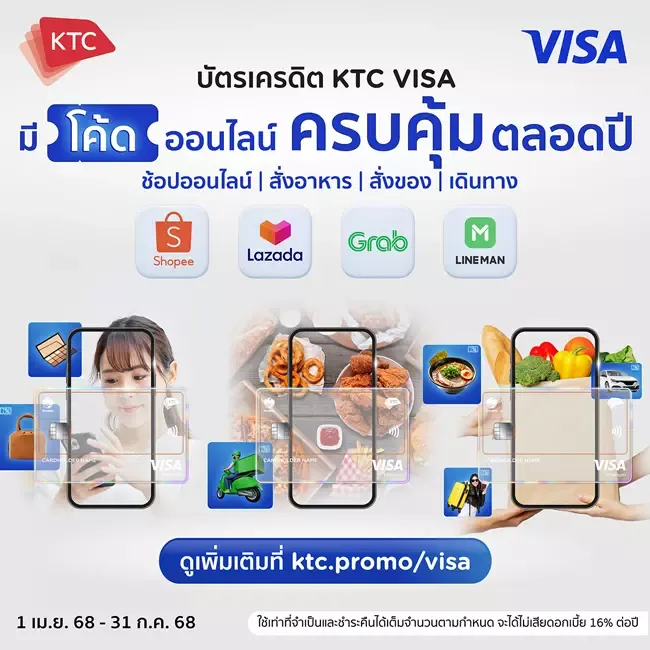 "An analysis of KTC members' online spending behavior reveals similarities between online shopping and food delivery users. They are Smart Users who seek discounts, spend on online transactions frequently, know how to collect promo codes, and plan their spending wisely. To add value for these savvy shoppers, KTC and VISA are offering value discount codes year-round encouraging continued use. Most importantly, customers can always choose the‘KTC VISA credit card’ as their go-to option for online spendingto unlock exclusive offers. VISA is pleased to provide exciting privileges throughout 2025."