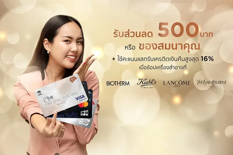 “KTC”orKrungthai Card Public Company Limited,joins hands withL’Oreal Luxe,a distributor of world-famous cosmetic brands, and offers special privileges for purchases of cosmetics from affiliated luxury brands, includingKiehl’s, Biotherm, YSL,andLancome, at storefronts or via online channels with a KTC credit card. Cardmembersget 500 Baht discountor complimentary products andearn up to 16% cash backwith the usage ofKTC FOREVERpoints in the amount equivalent to the redeeming transaction (terms and conditions apply). Participating brands for storefront purchases include Kiehl’s and YSL and online channels includeKiehl’swww.kiehls.co.thBiothermwww.biotherm.co.thYSLwww.yslbeautyth.comandLancomewww.lancome.co.th. Promotion is availablefrom June 1 to August 31, 2021.