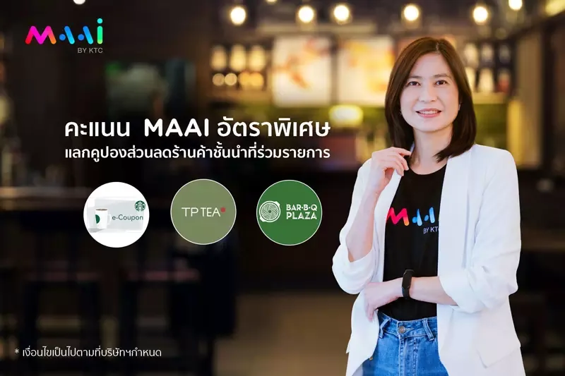 Miss Usanee Laohavaranun, Head of MAAI Business and Marketing Communications, “KTC”orKrungthai Card Public Company Limited,stated,MAAI BY KTCis a provider of comprehensive digital loyalty platforms and solutions for managing accumulated points and lifestyle benefits with over 1,800,000 point redemption stores nationwide. As a special New Year's gift, we are offering MAAI BY KTC membersspecial privilegesand an enhanced experience for redeeming MAAI points from January 2024 to March 2024, as follows:
