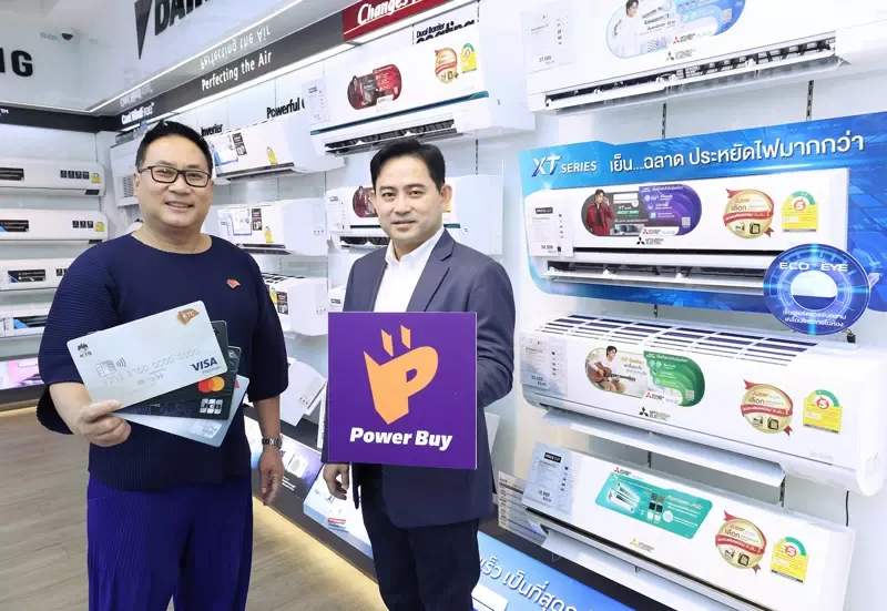 Mr. Nattasit Soontranu, Head of Credit Card Marketing, “KTC”orKrungthai Card Public Company, Limited,jointly withMr.Varawut Pongchinpak, President Of Power Buy Company Limited under Central Retail Corporation,organize a marketing campaign to beat the heat.Through 3x value privileges on air conditioners for KTC credit cardmembers. With 0% interest installments for up to 10 months, cardmembers will enjoy:first privilege; get up to a 15% instant discount on selected items only;second privilege; receive an additional discount of up to 15% upon KTC FOREVER point redemption, andthird privilege; earn up to 25,000 baht special cash back (per cardmember throughout the promotion period). For cardmembers withfull payment, enjoy 2 privileges: 1) receive up to a 15% discount upon KTC FOREVER point redemption, and 2) earn up to 25,000 special points (per cardmember throughout the promotion period) from 1 March 2023 to 31 May 2023 at all Power Buy branches.