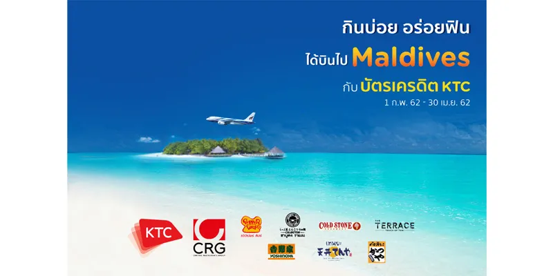 Mrs. Pranaya Nithananon, Vice President - Credit Card Business, “KTC”orKrungthai Card Public Company Limited, jointly withCentral Restaurants Group Company Limited (CRG), Thailand’s business leader in food networks, launch the“Frequent Eatery and Win Trip to Maldives”campaign. Members receive double privilegesfrom February 1, 2019 to April 30, 2019:1)Receive 15% discountinstantly for food and beverage payments (in compliance with restaurant terms and conditions) orredeem for 20% discountwith the redemption ofKTC FOREVER pointsequivalent to the amount of the sales slip, and2) Get chances for a free trip toMaldives(package including air tickets and accommodations : 2 persons/prize) worth Bt. 100,000, or10 Veranda Resort Pattaya M Gallery by Sofitel packageswith a grand total worth of Bt. 60,000, by making the highest value and most frequent transactions using KTC credit cards, starting from Bt. 300 or more, at seven renowned restaurant brands with over 123 branches across the country, including, Pepper Lunch / Chabuton Ramen / Cold Stone Creamery / The Terrace / Yoshinoya / Tenya and Katsuya.