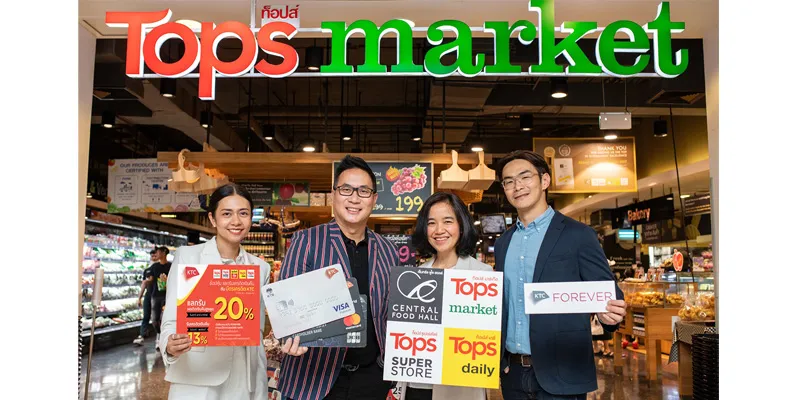 Mr. Nattasit Soontranu, Vice President - Credit Card Business,“KTC”orKrungthai Card Public Company Limited,jointly withMs. Wattinaporn Banthuchai, Vice President- Brand Marketing & Advertising of Central Food Retail Company Limited,provide exclusively privileges for KTC credit card members.Get 20% cash back every Friday, Saturday, and Sunday,and 13% cash back Monday - Thursday when redeeming KTC FOREVER points equivalent to total purchase amount at“Central Food Hall and Tops” across the country(Central Food Hall / Tops market / Tops SUPERSTORE / Tops daily and Tops online)between March 27, 2019 to April 30, 2019(with no restrictions on maximum cash back redemption value).