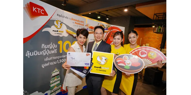 Mrs. Pranaya Nithananon, Vice President-Credit Card Business, “KTC”orKrungthai Card Public Company Limited,jointly withMr.Wisutthisak Machchacheep Senior Sales Manager – Commercial DepartmentNokScoot Airlines,launches“Eat Japanese with Chances to Fly to Japan with KTC Credit Cards and NokScoot”major campaign once again per customer request. KTC offersup to 30% discountsat over 100 participating leading Japanese restaurants with over 300 branches for members to dine deliciously with a value, along withchances to win a Japan tour package for free with NokScootsimply by making every Bt. 1,000 transactions using KTC credit cardsfrom July 1, 2019 to September 30, 2019.Members fly conveniently on the NokScoot Boeing 777Bangkok - Osaka flight for 50 prizes 100 seats with a grand total worth of Bt. 2 million.