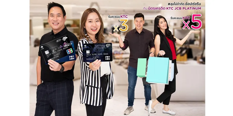 Mr. NattasitSoontranu, Vice President- Credit Card Business,KTC”orKrungthai Card Public Company Limited,partners withMs. Prutsapa Pruksanusak, Manager - Bank Relation Division, JCB International (Thailand) Company Limited,provide KTC JCB cardmembers worthwhileness withup to 5x KTC FOREVER pointsby making accumulating transactions valued at 10,000 Baht or more per month per card or3x KTC FOREVER pointsby making accumulating transactions valued less than 10,000 Baht per month per card at leading department stores includingCentral / Zen at Central World / Robinson / The Mall / Emporium / Paragon / Blueport Huahin / Tokyu / Isetan / Siam Takashimaya / Siam Discovery(only at participating counter brands)/ Icon Siam(only at “OPENSPACE ZONE” and participating counter brands) andEmQuartier(only at Sports Mall zone and 2nd floor of Waterfall Quartier)from October 1, 2019 to December 31, 2019.