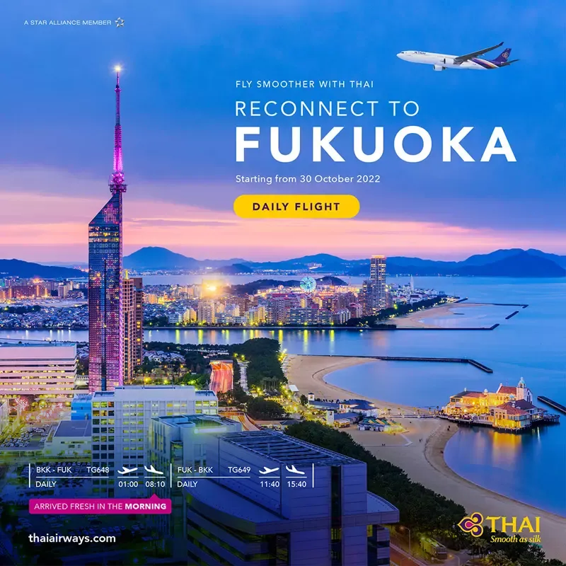 “KTC” or Krungthai Card Public Company Limitedoffer an exclusive privilege for KTC credit cardmembers witha special bonus of Royal Orchid Plus (ROP) miles when redeeming Thai Airways’ award ticket at KTC World Travel Service. With the resumption ofBangkok – Fukuoka direct flightafter the Covid-19 pandemic, KTC credit cardmembers can now redeem 45,000 ROP miles for a round trip ticket on an economy class or 95,000 ROP miles for a business class to Fukuoka. Thai Airways also allocates more availabilities for KTC credit cardmembers traveling between 30 October 2022 – 30 November 2022.As a special bonus,KTC credit cardmembers who redeem ROP miles on the Bangkok-Fukuoka route at KTC World Travel Servicewill receive 1,000 ROP bonus milesper person.
