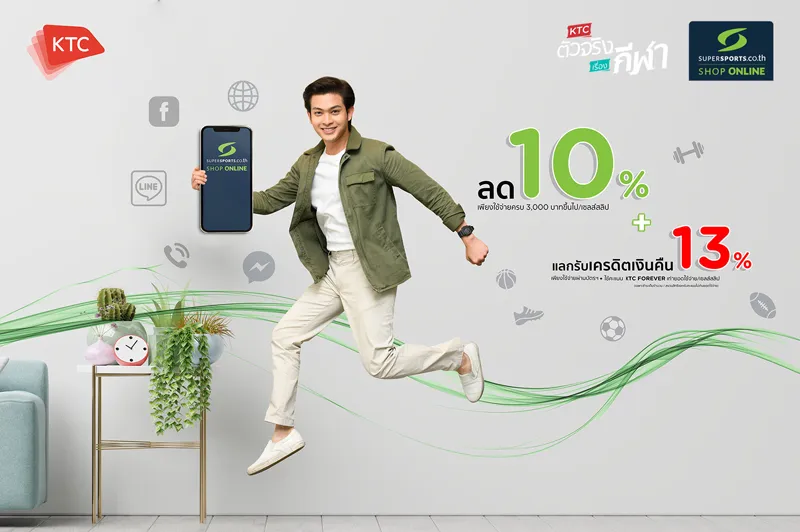 “KTC”orKrungthai Card Public Company Limited,reinforces the“KTC is the real deal for sports”concept and encourages cardmembers to exercise to stay healthy with special privileges for purchases made viaSupersports Shop Online.Cardmembers receive10% discountby making purchases valued at 3,000 Baht or more per transaction with a KTC credit card and the“KTC10”code before checkout on Tuesday and Thursday, andredeem for 13% credit cash backwith the usage ofKTC FOREVERpoints in the amount equivalent to the transaction made in full with a redemption limit not exceeding the transaction amountfrom March 1, 2020 to February 28, 2021.