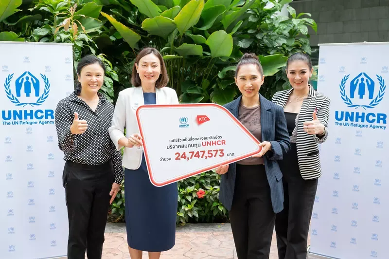 Ms. Sireerat Corvanich(center-right),Head of Credit Card Marketing,“KTC” or Krungthai Card Public Company Limitedis the representative of KTC to hand over24,747,573baht donation toMs. Arunee Achakulwisut(center-left),Head of Private Sector Partnership Service, UNHCR. KTC members donate through their credit cards by redeeming KTC FOREVER points (every 1,000 KTC FOREVER points into 100 baht cash donation) to UNHCR in helping refugees at UNHCR, Krung Kasem Road recently.