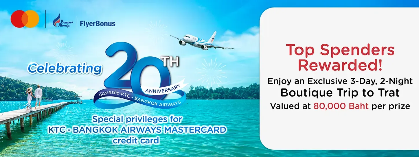 • This privilege is exclusively for KTC – BANGKOK AIRWAYS MASTERCARD cardmembers who accumulate a minimum total spend of THB 200,000 across all spending categories and make at least one transaction with Bangkok Airways during the campaign period from 15 May 2025 to 31 July 2025.