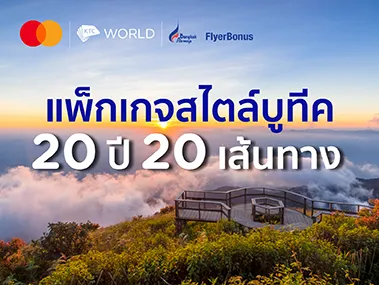 Promotion with KTC WORLD Receive a discount of 2,000 Baht/couple when paying with the KTC - BANGKOK AIRWAYS MASTERCARD card for booking a special package of 20 routes according to the program of 20 designated routes, booked at KTC WORLD. *Limited availability.