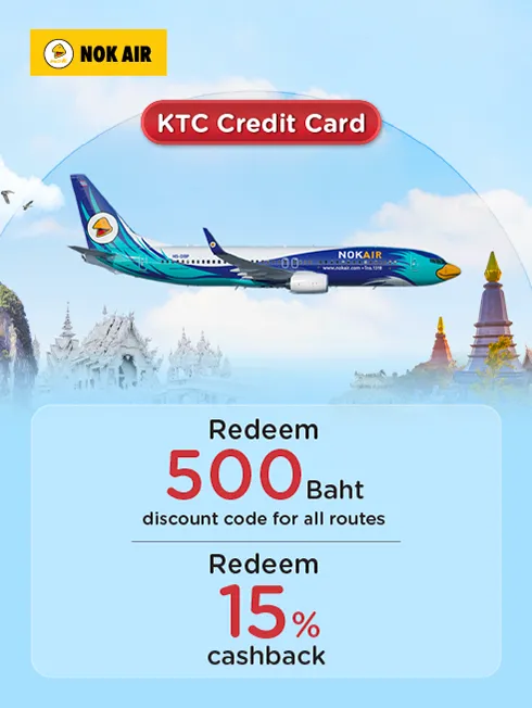 - Eligible only for bookings made via Nok Air’s official channels (website and mobile app) with full payment made using a KTC credit card. A processing fee will be applied as follows: