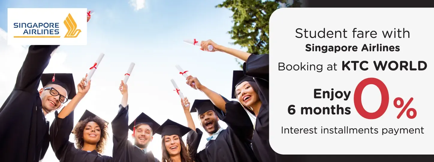 Promotion for KTC credit card members at KTC WORLD who are students. Find special prices and special privileges when flying with Singapore Airlines. You can choose to travel in economy class and business class both one-way or round-trip and can enjoy installment plan 0% 6 months.