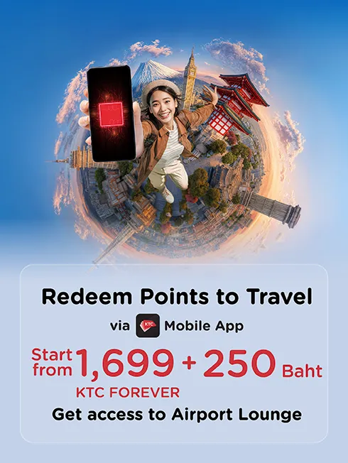 Redeem KTC FOREVER points and pay the specified amount to receive travel products. Easy redemption, convenient, and exclusive privileges at participating merchants.