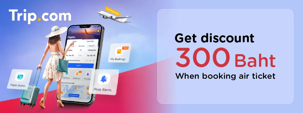 - During the booking period, users must sign in to their Trip.com account in Thai language and make a flight booking, then enter promo code on the payment page in order to receive the discount. Promo codes apply to the price before fees, and additional costs.