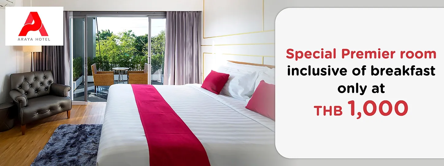 Special Premier room inclusive of breakfast only at THB 1,000 for 2 persons
