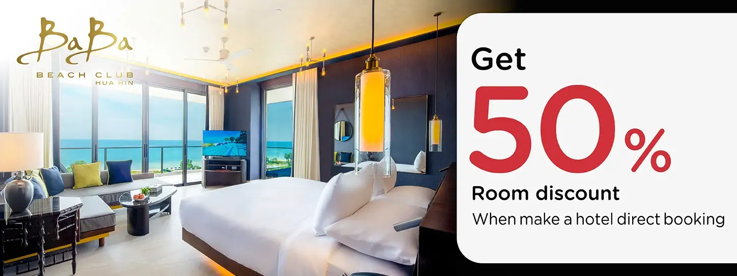 when make a hotel's direct booking on website https://www.bababeachclub.com/huahin