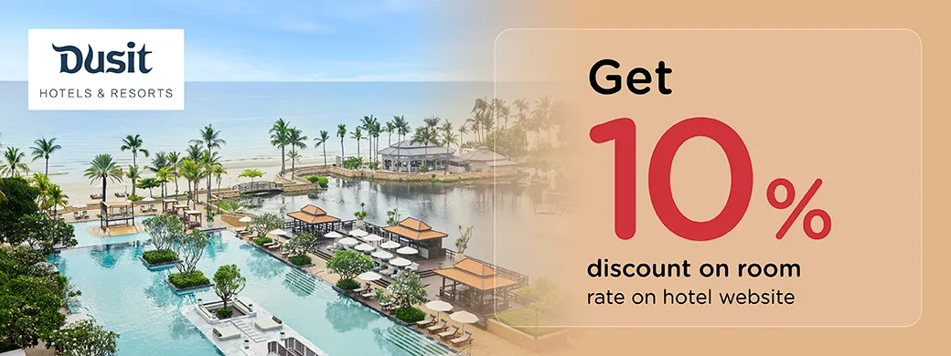 • 10% discount on food and non-alcoholic beverages at Baan Dusit Thani and all participating hotel restaurants