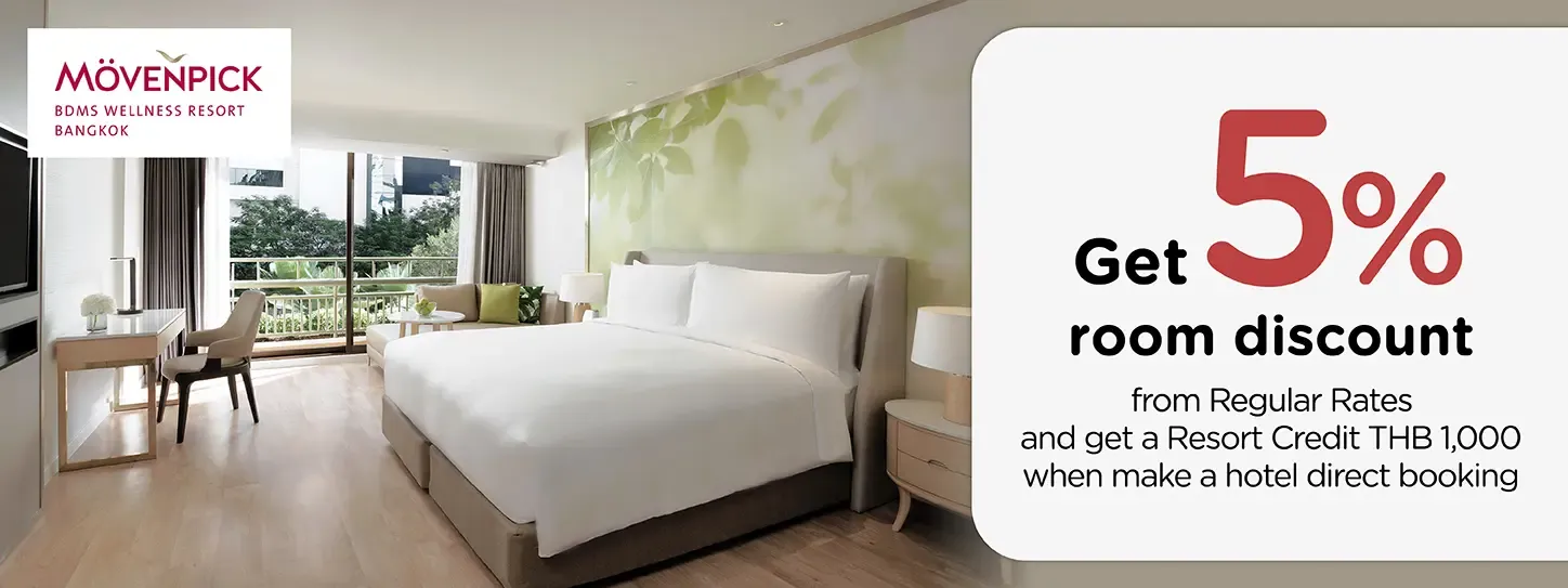 For more information or reservation, please contact Mövenpick BDMS Wellness Resort BangkokTel. 02 666 3333Email: resort.reservation@movenpick.comAddress: 2 Witthayu Rd, Khwaeng Lumphini, Pathum Wan, Krung Thep Maha Nakhon 10330 Mövenpick BDMS Wellness Resort Bangkok