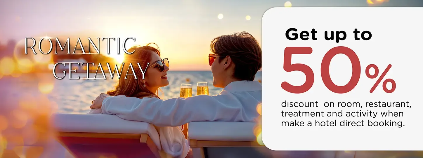 Romantic Getaways! Get up to 50% discount on room, restaurant, spa & treatment at The Most Romantic Destinations.