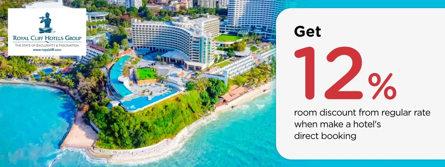 when make a hotel’s direct booking via website www.royalcliff.com / Email / Facebook / Line Official / Cell Phone.