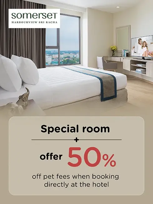 Special room rate with pet benefits at Somerset Harbourview Sri Racha when booking directly at the hotel through Facebook, Line Official, and Phone