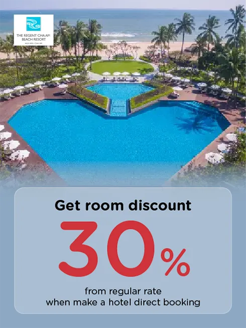 Get 30% room with breakfast from regular ratewhen make a hotel's direct booking via www.regent-chaam.com Promotion code 'KTCFAMEXTRA' Alpha Playcation