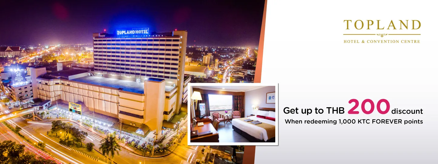 • Get a 200 Bath discount on food and beverages, when redeem 1,000 KTC FOREVER with minimum spending 500 baht
