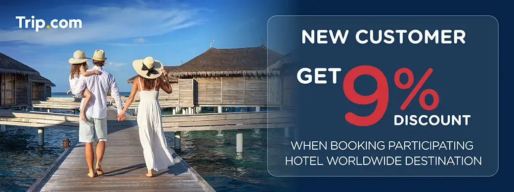 - During the promotion period, members must log in as Trip.com members to make a booking through the specified link and enter the promotion code during the payment process to receive the discount. Accommodation: New Trip.com members only, receive an additional 9% discount for participating hotels worldwide, with a maximum discount of 2,500 baht.