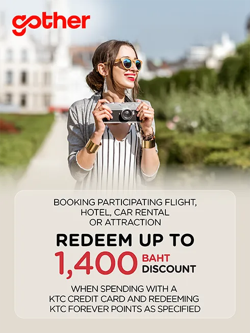 - Redeem 1,000 KTC FOREVER points for a 120 THB discount code when booking eligible products with a minimum spend of 1,000 THB per transaction.